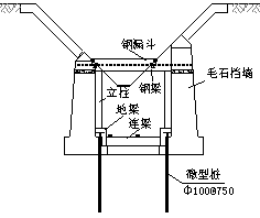 在地下通廊結構中,鋼漏斗內(nèi)鐵礦原料通過鋼梁對毛石擋墻施加豎向力。由于鋼漏斗內(nèi)原料高度經(jīng)常大于設計高度,使得毛石墻受到來自鋼漏斗較大的恕向壓力,造成毛石墻的基礎下沉,為了避免毛石墻基礎進一步下沉,需要對其進行加固處理。地下通廊皮帶槽與毛石墻體之間的最大距離約1.5m,最小距離0.5m,機械設備無法進行施工,同時整個加固施工期間不能影響生產(chǎn)的正常運行,經(jīng)過多方論證,決定采用人工成孔的微型樁(樹根樁)對毛石擋墻基礎進行托換處理。通過增加的鋼筋混凝土立柱、地梁和微型樁組成的豎向受力體系分擔來自鋼梁的壓力(圖7),減小毛石擋墻所受的豎向力,從而減小其沉降。