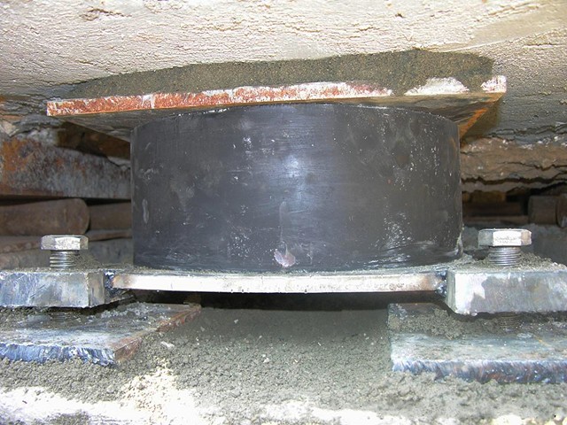 此工程的特別之處在于平移到位后,滾軸保留在上、下軌道梁之間,與在縱橫墻交接處后加的鉛芯橡膠隔震支座共同形成隔震層,起到隔離地震能量的作用。
