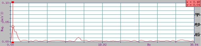 平移后的測試結(jié)果:根據(jù)實測的實時譜曲線,平移后二層樓面振動測點的主頻為0.49HZ(振動周期2.04s)。
