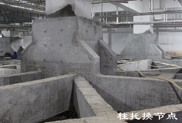 上軌道及行走機構(gòu)施工: 柱節(jié)點采用四邊包裹式的托換方式。 根據(jù)該工程單柱最大荷載11770kN和單個滾軸平均壓力不超過300kN的原則,確定柱節(jié)點托換梁的最大截面尺寸為320mm×2000mm,從柱邊的最大外伸長度為900mm。 水平連梁的截面尺寸為320mm×800mm,斜撐的截面尺寸為300mm× 600mm。