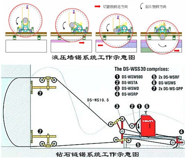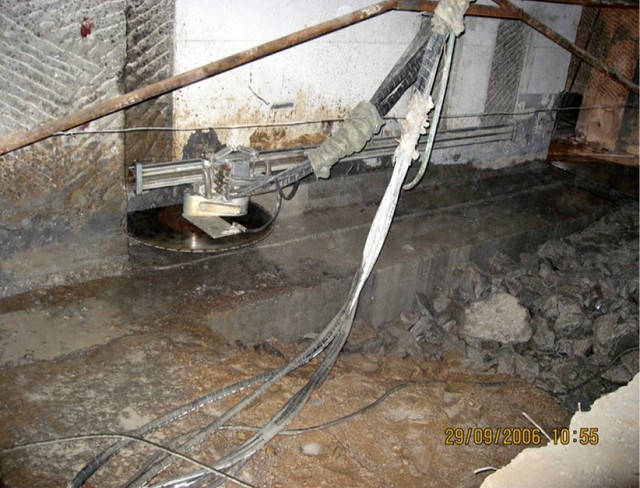 柱截斷采用鉆石鏈鋸系統(tǒng);墻體截斷采用半自動推進式墻鋸系統(tǒng)。 截斷施工采取先裙樓后主樓,先柱后墻交對稱截斷的施工原則,以盡量減小因為荷載轉(zhuǎn)移和托換結(jié)構(gòu)變形而對上部結(jié)構(gòu)造成影響。
