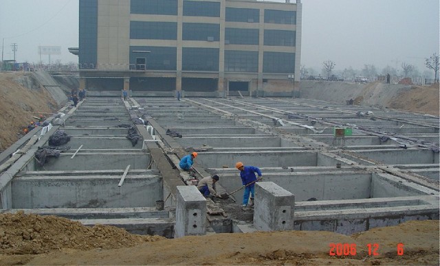 該建筑為框架—剪力墻結(jié)構(gòu),由主樓和裙樓兩部分組成,主樓地下1層,地上15層,裙樓地下1層,地上3層,長72.8m,寬41.3m,占地面積2700m2,總建筑面積24000m2,總高度67.6m, 基礎(chǔ)采用筏板基礎(chǔ)。