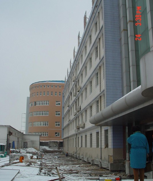 2002年12月,因經(jīng)十路拓寬,山東省建工集團辦公樓沿橫向向南平移7.6m。