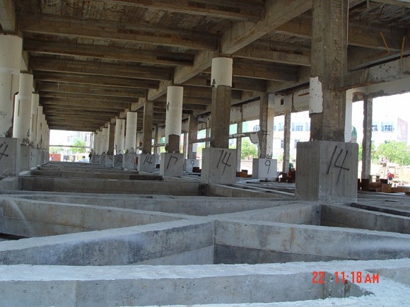 2005年7月旋轉(zhuǎn)施工完成,施工過(guò)程中基礎(chǔ)及上部結(jié)構(gòu)未受損傷。