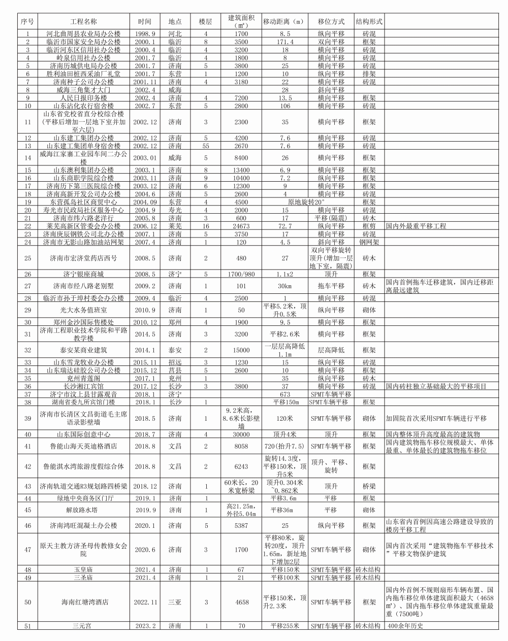 山東建筑大學工程鑒定加固研究院有限公司、山東建固特種專業(yè)工程有限公司國內(nèi)建筑物整體平移工程實踐匯總-建筑移位