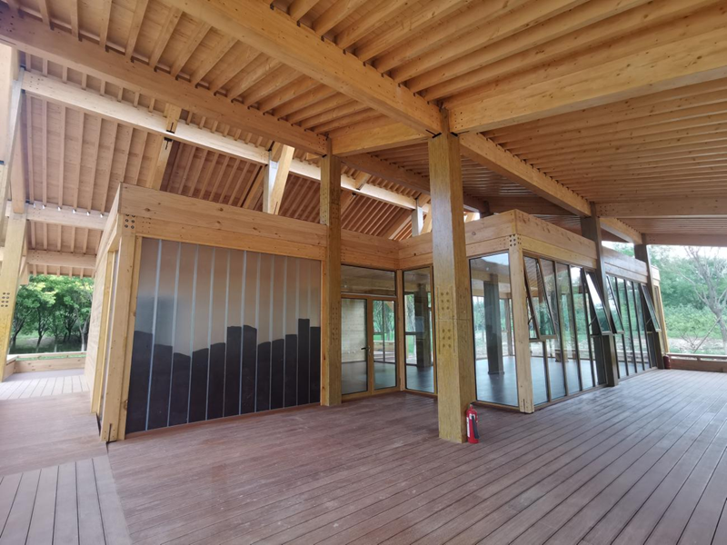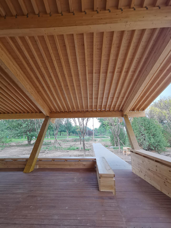 北京南苑森林濕地公園森林書屋項(xiàng)目由崔愷院士主持建筑設(shè)計(jì),倡導(dǎo)綠色、低碳、環(huán)保、可持續(xù)發(fā)展的建筑理念;森林書屋位于北京市大興區(qū)南苑森林濕地公園內(nèi),地上一層無(wú)地下室,總建筑面積120.13㎡(室外坡屋面造型面積約365㎡),建筑總高度8.1m,施工總造價(jià)約150萬(wàn)元;本項(xiàng)目是以無(wú)機(jī)復(fù)合竹結(jié)構(gòu)為主導(dǎo)框架的現(xiàn)代竹木結(jié)構(gòu)在城市更新及人居環(huán)境提升領(lǐng)域的首次示范應(yīng)用。