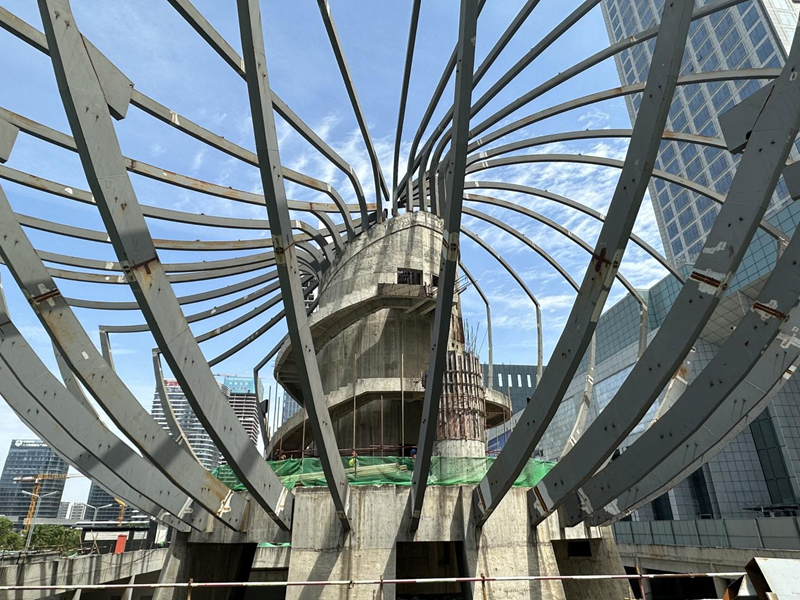 CBD中央廣場17#地塊位于山東省濟(jì)南市,地塊南側(cè)為經(jīng)十東路,東側(cè)為茂嶺山三號路,北側(cè)鄰解放東路,西側(cè)為規(guī)劃路及規(guī)劃中的市民公園,項(xiàng)目用地面積17033平方米。碗形建筑位于該地塊西側(cè)市民公園,該建筑始建于2017年,完成部分構(gòu)件施工后于同年停工,至2022年11月,委托單位擬繼續(xù)施工。
