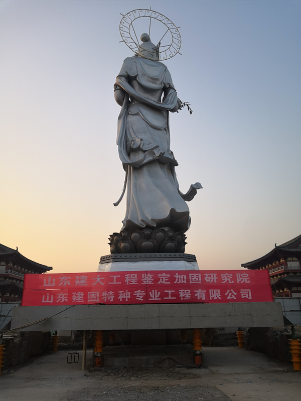 概況介紹:汶上縣甘露觀音像建于2009年,位于寶相寺寺前廣場(chǎng)。佛像總高度20.15米(龍座2.25米,蓮花座1.23米,觀音像16.67米),根據(jù)建設(shè)單位要求,需將觀音像遷移至供奉殿西側(cè)菜園位置建殿供奉??傔w移長(zhǎng)度約672.69米(甘露觀音像原址從北側(cè)進(jìn)車拖運(yùn),往北到尚書路后往西,再沿寶相寺西側(cè),新整修一條臨時(shí)道路,到達(dá)菜園西側(cè),打開西墻,進(jìn)入指定位置)。